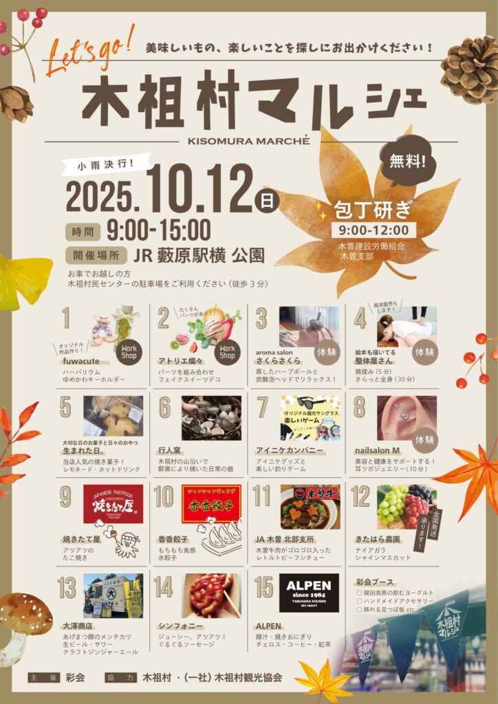 イベント出店のお知らせ【木祖村マルシェ】2025.10.12(日)